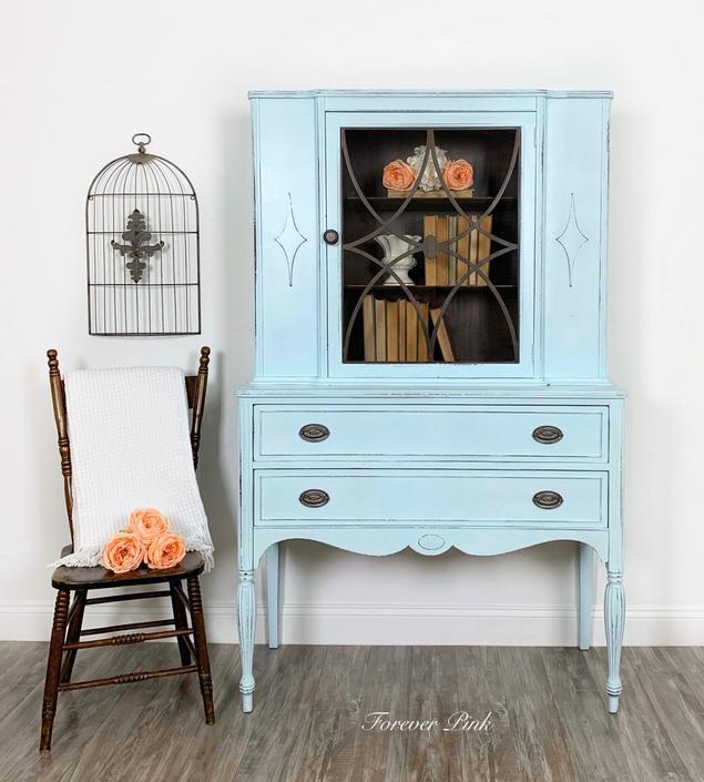 She's been painted in general finishes. The hutch cabinet doors are plexiglass with an adjustable shelf inside so you can store larger, bulkier items. Must be picked up no later than thursday, feb 4th. I have an antique china cabinet that was my grandmothers and i am terrified to ruin it or change it with a makeover. Great condition coming from a smoke free home.